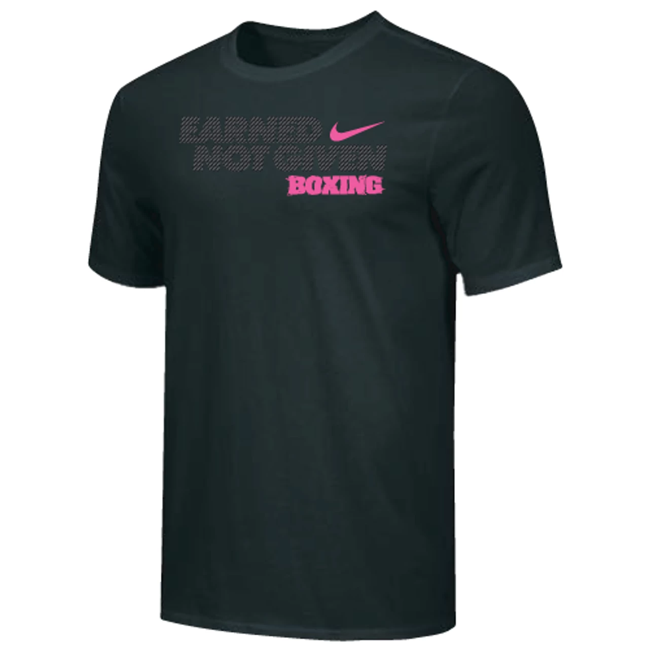 Nike Men’s Boxing Earned Not Given Tee – Black/Grey/Pink – Form and function combine for a modernized look with less bulk in the Nike 100% Premium Ring Spun Cotton Tee.