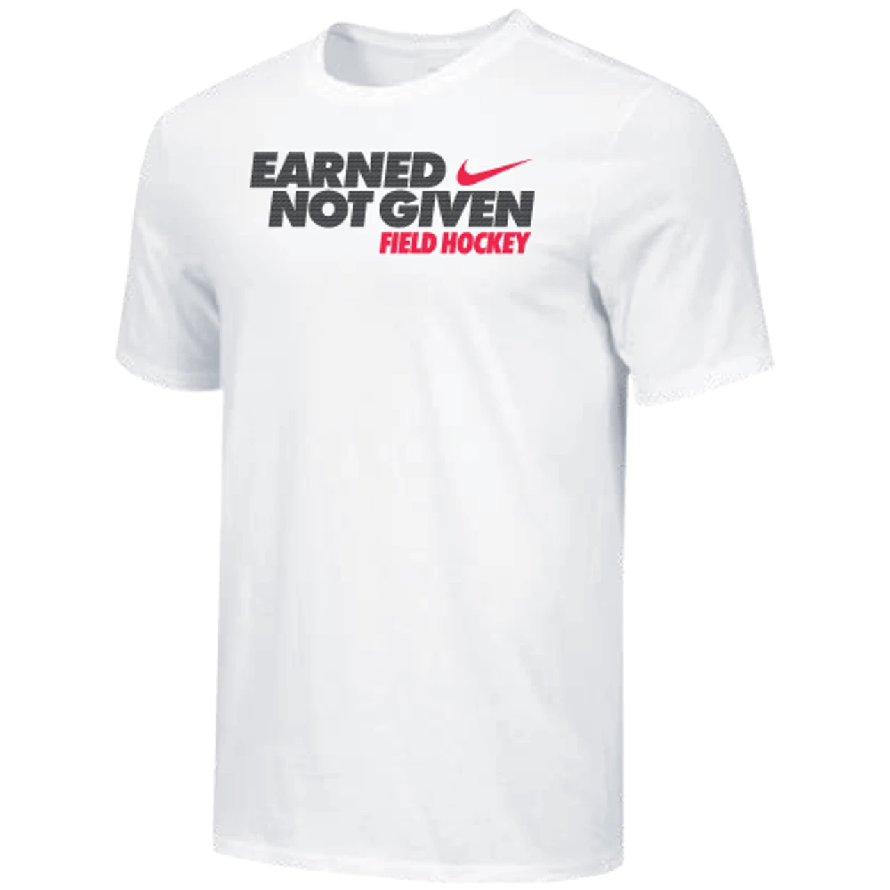Nike Men’s Field Hockey Earned Not Given Tee – White/Black/Red – Form and function combine for a modernized look with less bulk in the Nike 100% Premium Ring Spun Cotton Tee.