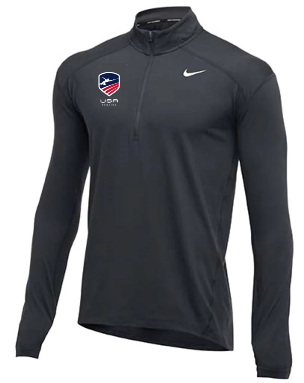 Nike Men’s USA Fencing 1/2 Zip Top – Charcoal – Nike Dri-FIT technology helps you stay dry and comfortable. 1/2-zip design with a mock neck provides versatile coverage. Interior tape moves smoothly against your skin. Swoosh design trademark is printed on the right chest. 100% POLYESTER.