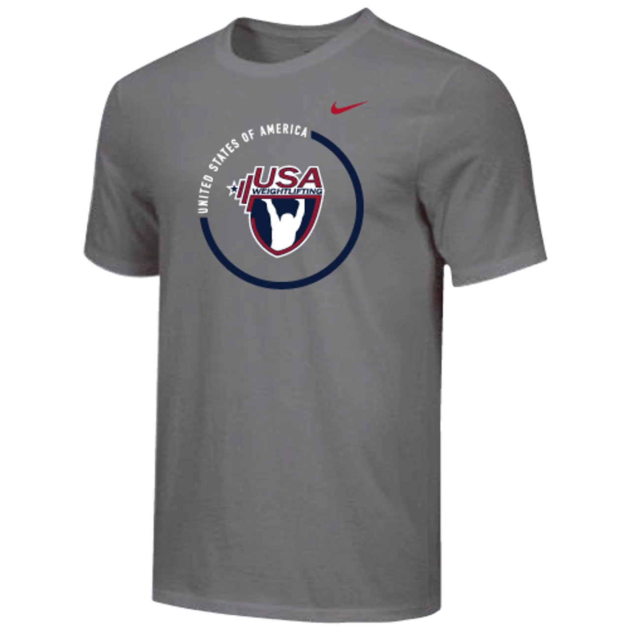 Nike Men’s USA Weightlifting USA Circle Tee – Grey – Form and function combine for a modernized look with less bulk in the Nike 100% Premium Ring Spun Cotton Tee.