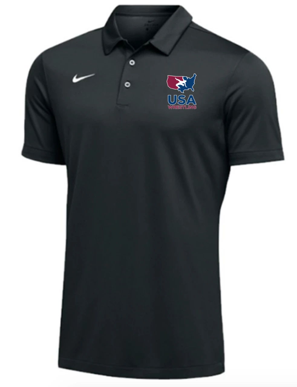 Nike Men’s USAWR SS Polo – Black – USA Wrestling short sleeve polo has a Dri-FIT double knit flat back mesh body fabric with self collar. 3 Button front placket. Embroidered Swoosh design trademark at right chest. ** Please allow 10 business days from order date for production** **THIS ITEM IS NOT AVAILABLE FOR EXPRESS SHIPPING**