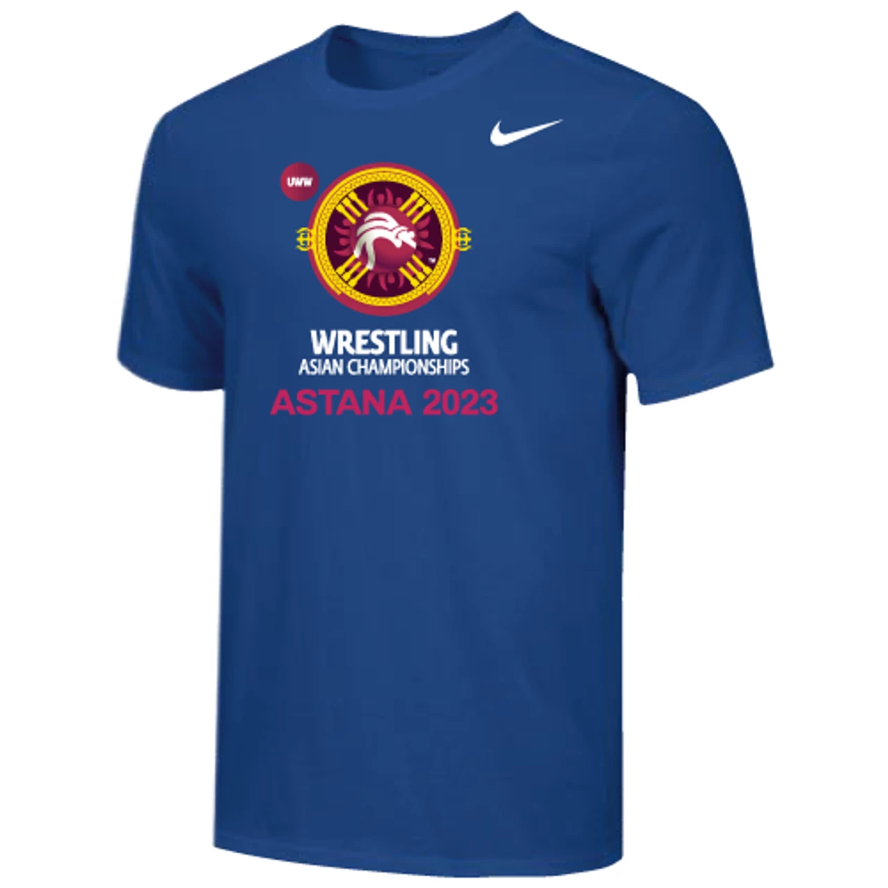 Nike Men’s UWW Asian Championships Astana 2023 Tee – Royal – Form and function combine for a modernized look with less bulk in the Nike 100% Premium Ring Spun Cotton Tee.