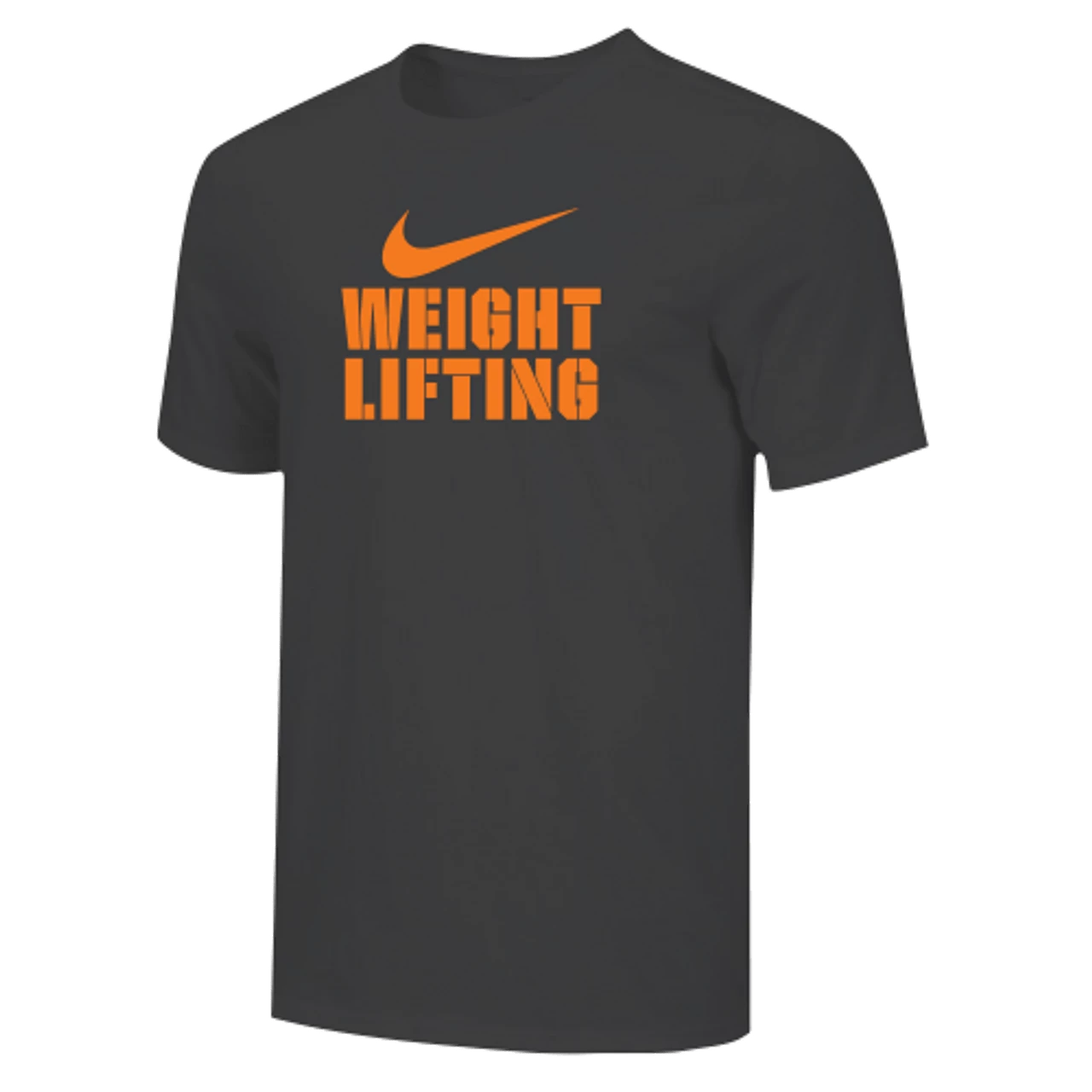 Nike Men’s Weightlifting Stacked Tee – Black/Fluorescent Orange – Form and function combine for a modernized look with less bulk in the Nike 100% Premium Ring Spun Cotton Tee.