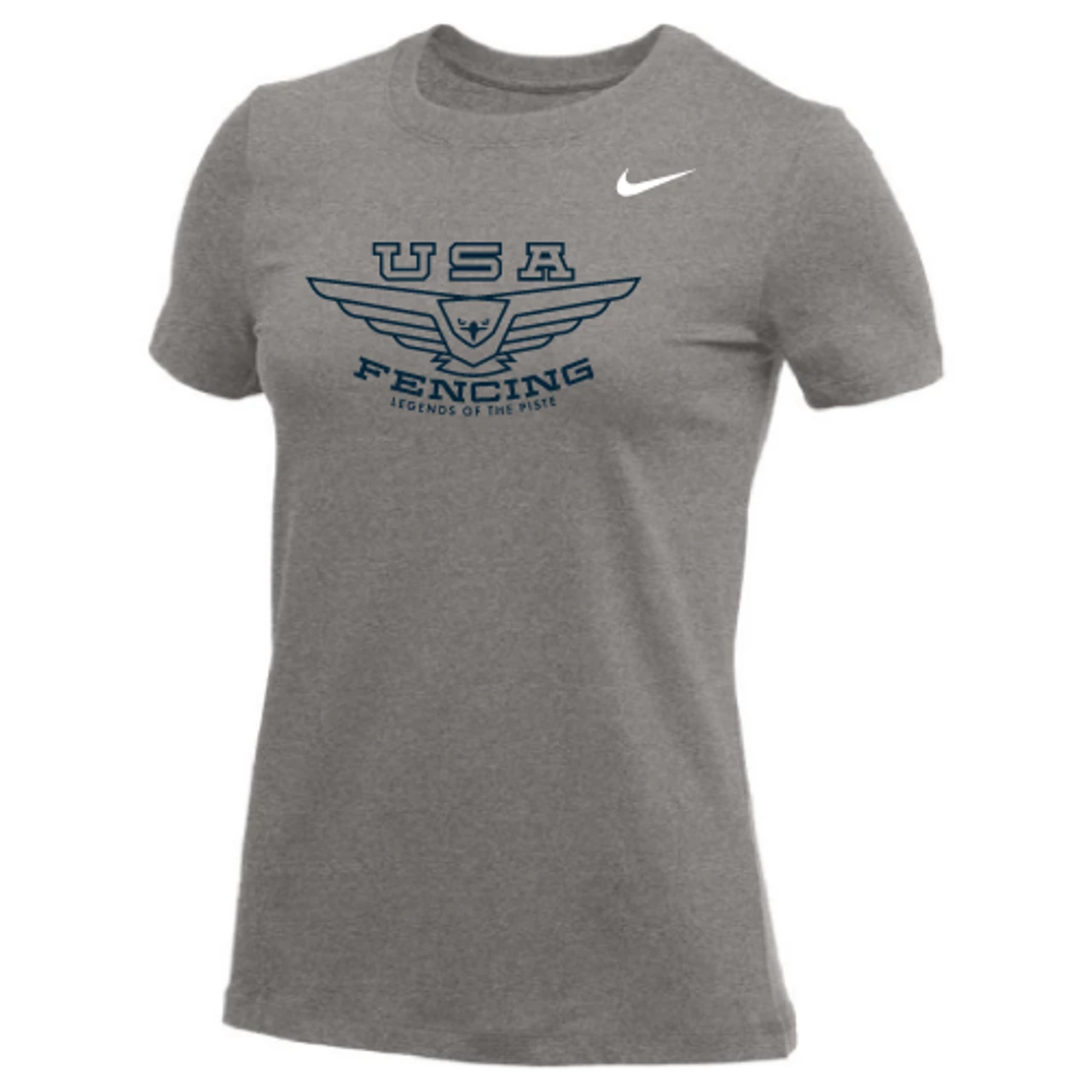 Nike Women’s USA Fencing Legends of the Piste Tee – Grey/Navy – Form and function combine for a modernized look with less bulk in the Nike 100% Premium Ring Spun Cotton Tee.