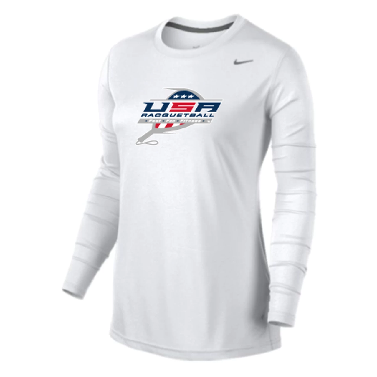 Nike Women’s USA Racquetball Team Legend LS Crew – White – USA Racquetball Dri-FIT technology helps you stay dry and comfortable. Lightweight softness creates a comfortable experience while training. 100% POLYESTER  Â