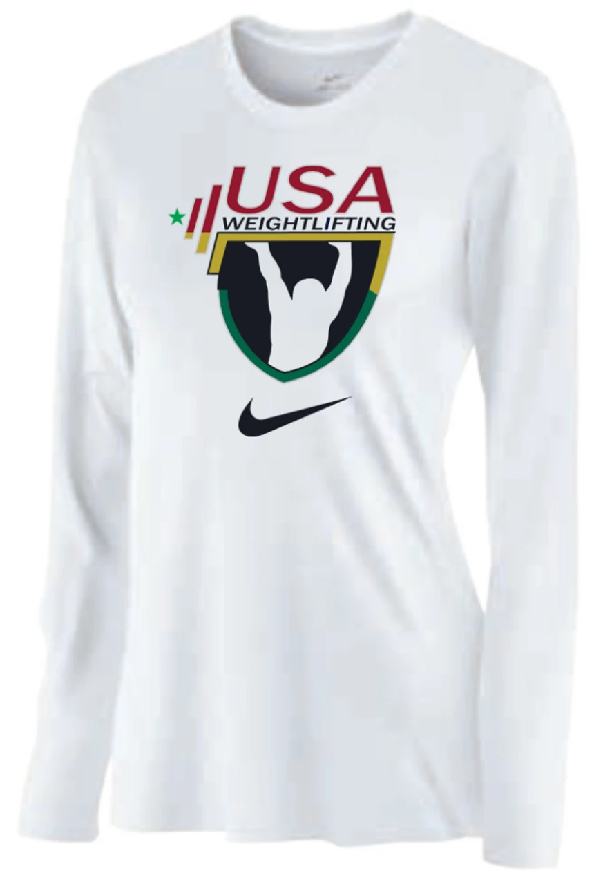 Nike Women’s USAW Team Legend LS Black History Month Crew – White – USA Weightlifting Dri-FIT technology helps you stay dry and comfortable. Lightweight softness creates a comfortable experience while training. 100% POLYESTER  Â