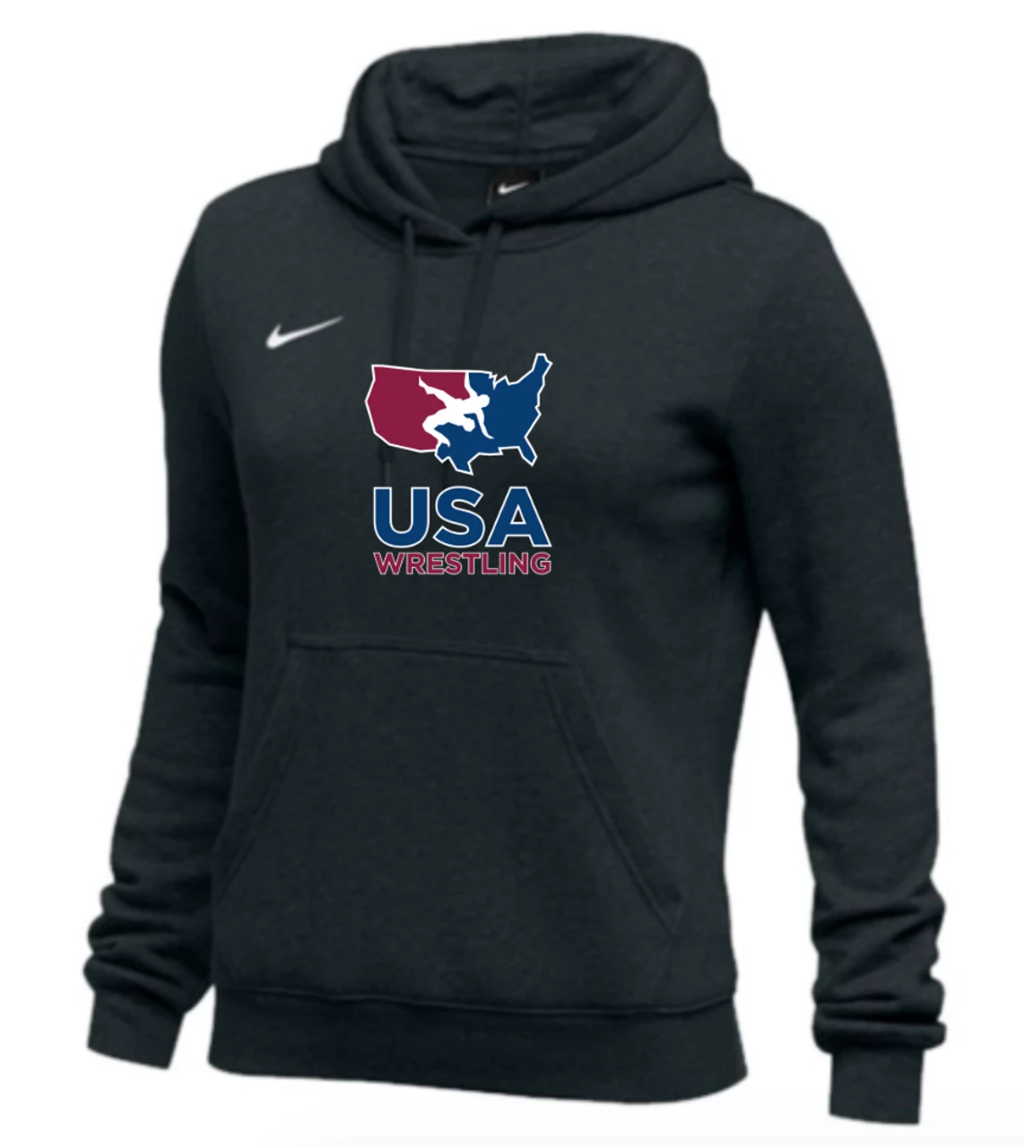 Nike Women’s USAWR Club Fleece Pullover Hoodie – Black – USA Wrestling Hoodie delivers the soft comfort of French terry fabric in a classic design. It’s a versatile layer ideal for the gym, practice or for every day wear. ** Please allow 10 business days from order date for production** **THIS ITEM IS NOT AVAILABLE FOR EXPRESS SHIPPING**