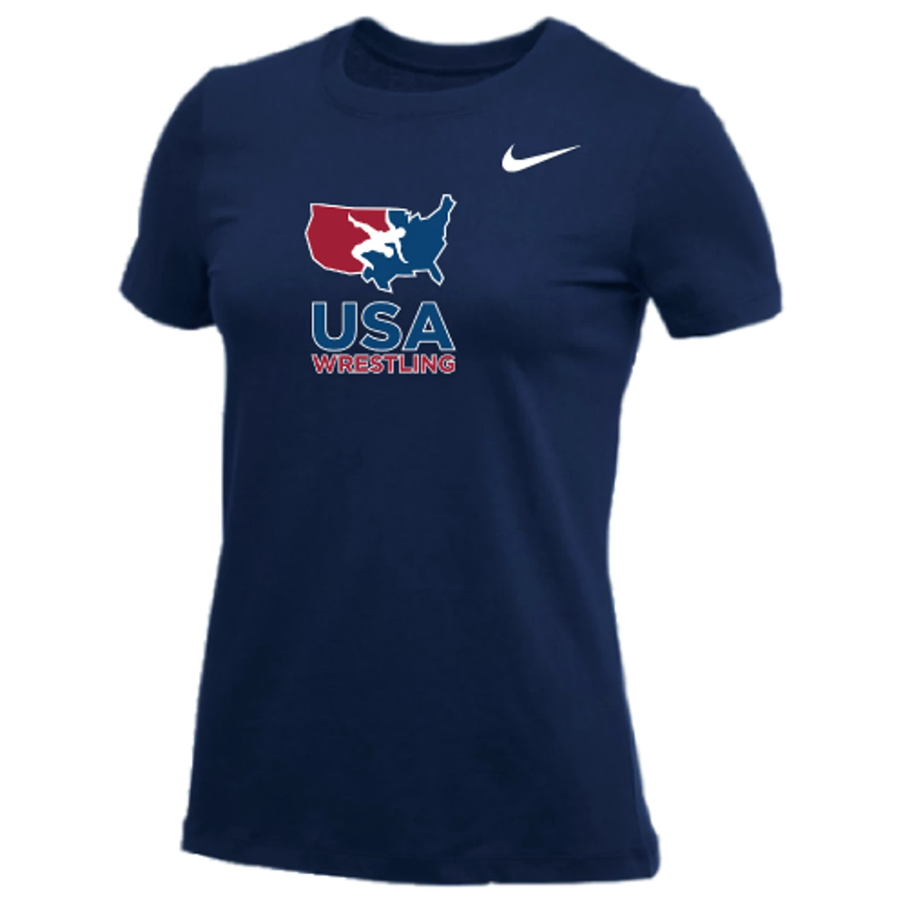 Nike Women’s USA Wrestling Tee – Navy – Form and function combine for a modernized look with less bulk in the Nike 100% Premium Ring Spun Cotton Tee.
