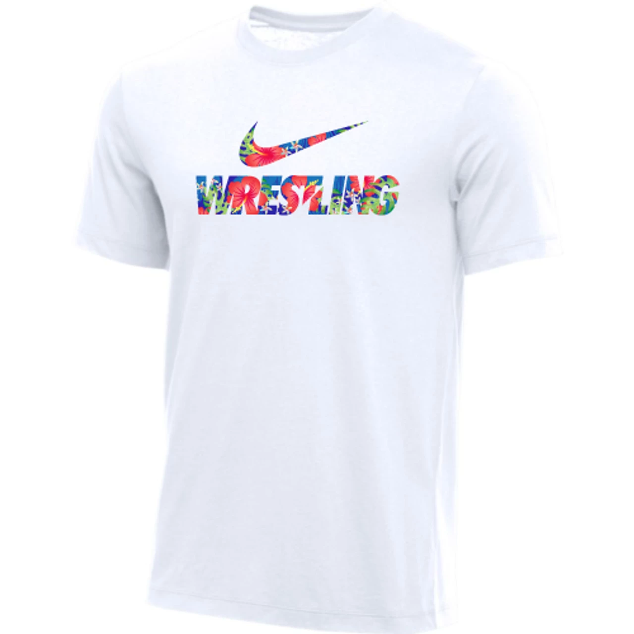 Nike Women’s Wrestling Tee – Floral/White – Form and function combine for a modernized look with less bulk in the Nike 100% Premium Ring Spun Cotton Tee.