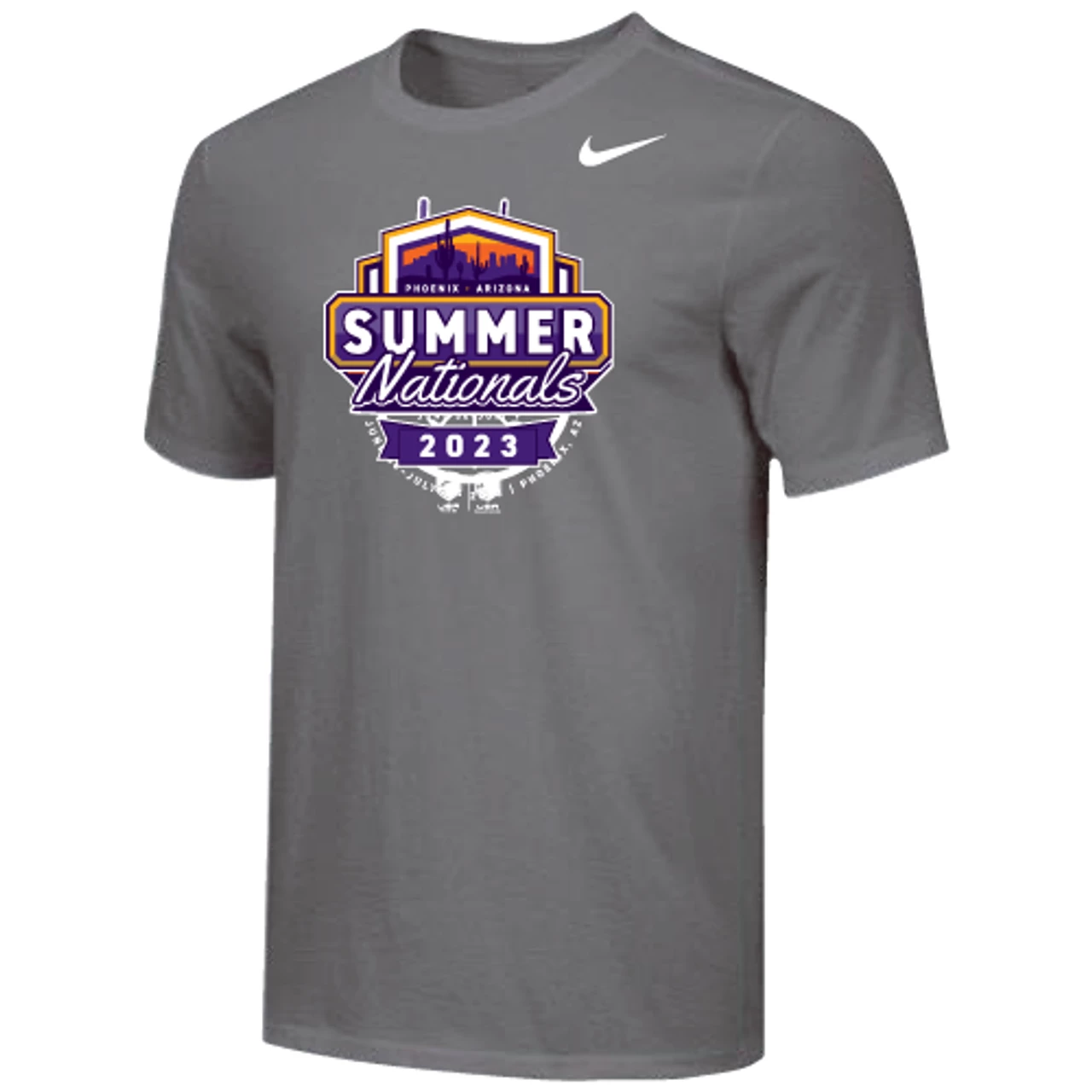 Nike Youth USA Fencing Summer Nationals 2023 Cotton Tee – Grey – Form and function combine for a modernized look with less bulk in the Nike 100% Premium Ring Spun Cotton Tee.