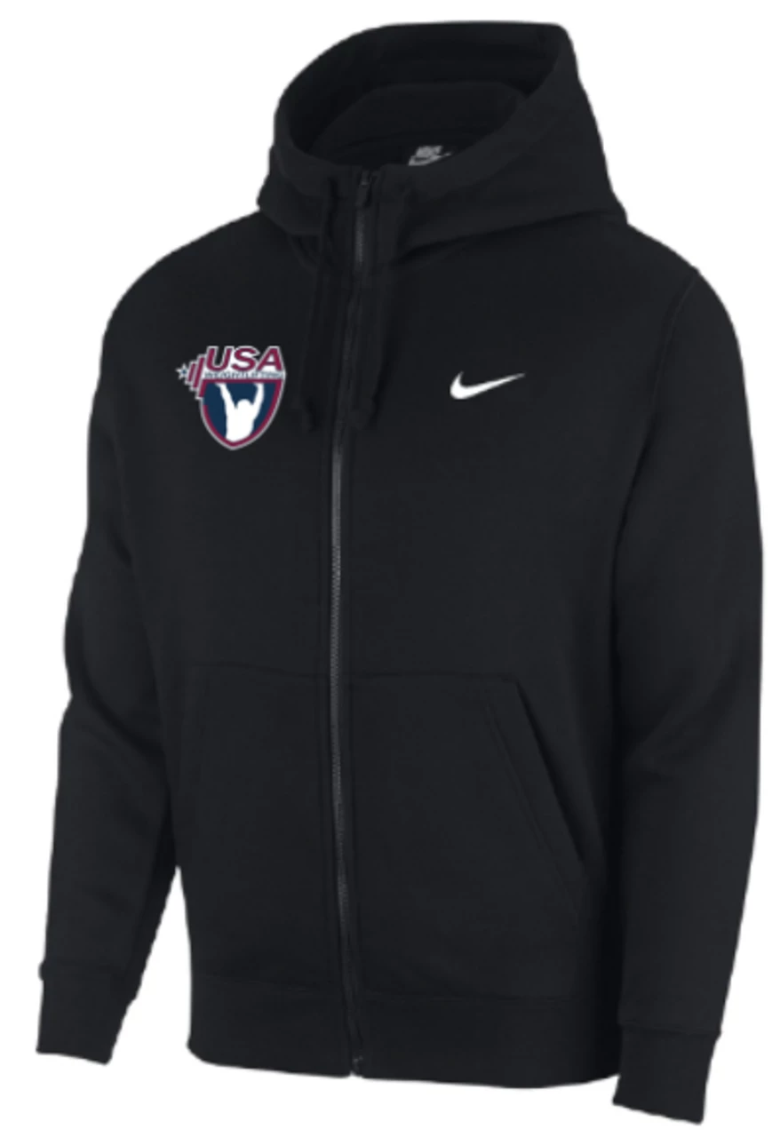Nike Youth USAW Club Fleece Full Zip Hoodie – Black – USA Weightlifting hoodie combines soft fabric with simple street style that’s versatile enough for everyday use. With a full zipper that goes to the chin, it’s the perfect extra layer on a chilly day.Fabric is brushed, making it super soft and comfortable. Full zipper allows for easy on and off. 80% COTTON 20% POLYESTER ** Please allow 10 business days from order date for production** **THIS ITEM IS NOT AVAILABLE FOR EXPRESS SHIPPING**