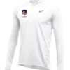 Nike Youth USA Weightlifting Pullover Club Fleece Hoodie – Long Sleeve hooded fleece with “V” at center front neck. Knit rib sleeve cuff and waistband. Drawcord at neck opening and lined hood. Center front pocket. Embroidered Nike swoosh design trademark located centered below neck opening.Â