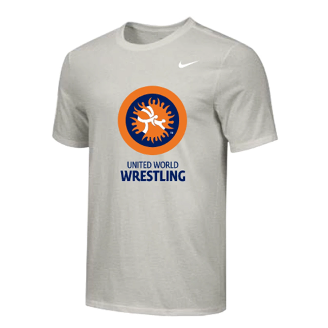 Nike Youth UWW Circle Logo Tee – Grey/Orange/Blue – Form and function combine for a modernized look with less bulk in the Nike 100% Premium Ring Spun Cotton Tee.