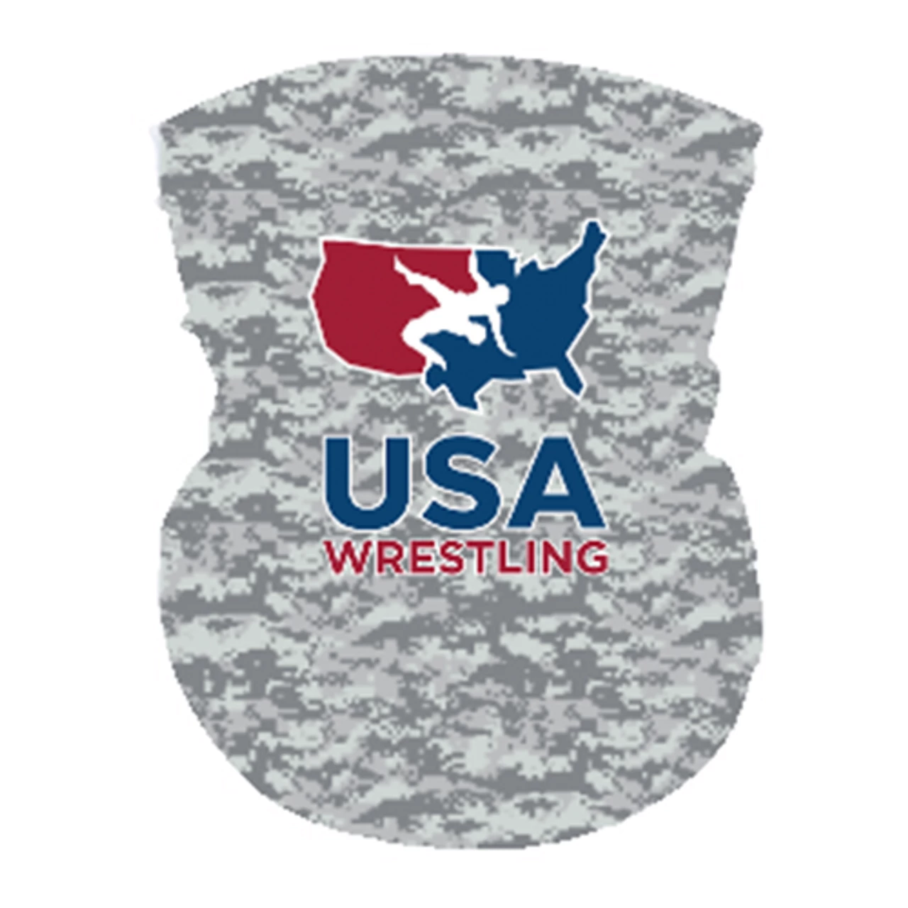 USAWR Neck Gaiter – White/Digi Camo – USA Wrestling Solar Micro Performance Gaiter Sublimation Face Mask, w/hemmed edges, 9.5″ x 8″. Made of 100% Solar Fabric that is breathable and includes moisture-wicking technology. Fabric: 100% Microfiber w/ UPF+. One Size Fits All.